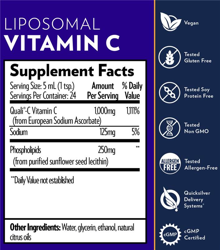 Quicksilver Scientific Liposomal Vitamin C contains European Quali®-C, a premium sodium ascorbate form of vitamin C that is produced in the green hills of Scotland, and is fully traceable to ensure a clean, GMO-free product. Buffered forms of vitamin C such as this are generally better tolerated than regular ascorbic acid supplements by those with gastrointestinal sensitivity.*Quali® is a trademark of DSM. If pregnant, consult physician before use.